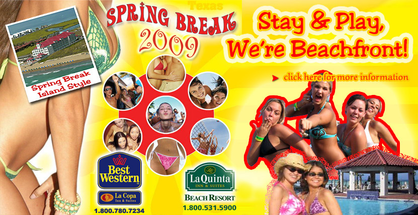 Welcome to the South Padre Island Spring Break Headquarters! If you are in search of sand, sun, and a ton of fun, you'll find it here! South Padre comes alive during spring break featuring award winning beaches and tropical weather perfect for all of your favorite daytime activities such as surfing, swimming, snorkeling, scuba diving, parasailing, wave runners, bikini contests, and coca cola beach parties - while also boasting super hot night clubs with live concerts and DJs to get your groove going all night long! Plan your South Padre Island Spring Break now! We've got the best places to stay and chill spring break style along with great travel packages and spring break discounts. Come to South Padre Island for YOUR spring break to party Island style and hang with thousands of your closest friends!! Spadre.com has THE BEST spring break photo gallery, look for us on the beach we'll be right in the middle of all of the action taking photos of all of the spring break activities and events going on at South Padre Island, Texas the number one spring break party destination in America!